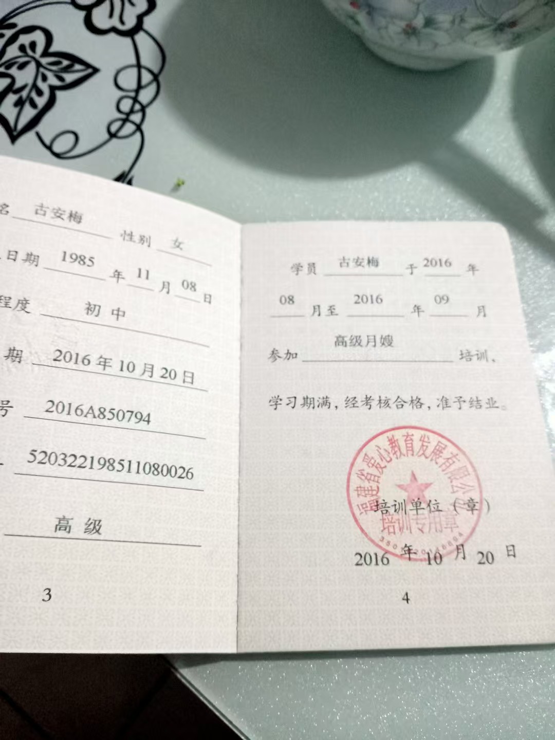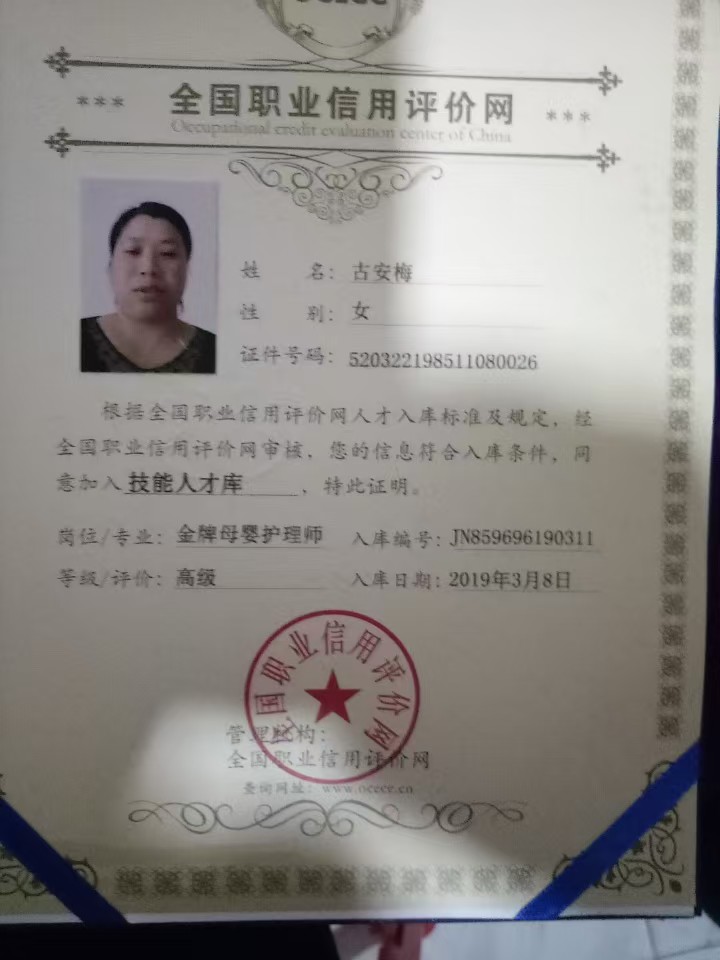 本人接受专业的母婴护理培训,对母婴护理工作非常娴熟! 擅长产妇营养搭配,制作月子餐,乳房保健,指导产后康复,产妇情绪疏导以及新生儿常见病的观察和处理。尤其对宝宝洗澡游泳,辅助操,被动操,抚触及早期潜能开发等有套专业的解决方法;对宝妈的恶露观察,产后心理疏导,协助母乳喂养、乳房保健护理,应对自如。